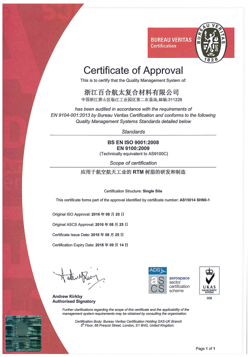 浙江百合航太復合材料有限公司成立于2014年,是集先進復合材料產品開發(fā)設計、生產、銷售、服務于一體的高新技術企業, 主要產品有復合材料液體成型樹脂、碳纖維、玻璃纖維和芳綸纖維預浸料、以及結構粘合劑膠膜等。